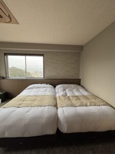 【お休み】セミダブルベッド2台を連結(ハリウッドツイン) 広々としたベッドを隙間なくくっつけてセッティング。添い寝の赤ちゃんも転落の心配が少なく、パパ・ママも広々と安心してお休みいただけます。